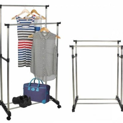 Suport pentru haine si umerase cu inaltime reglabila, intre 75 si 130 cm, cu 4 roti, pentru o mobilitate crescuta. Excelent pentru magazine sau pentru depozitare umerase intr-un spatiu restrans. Este foarte rezistent si fiabil.