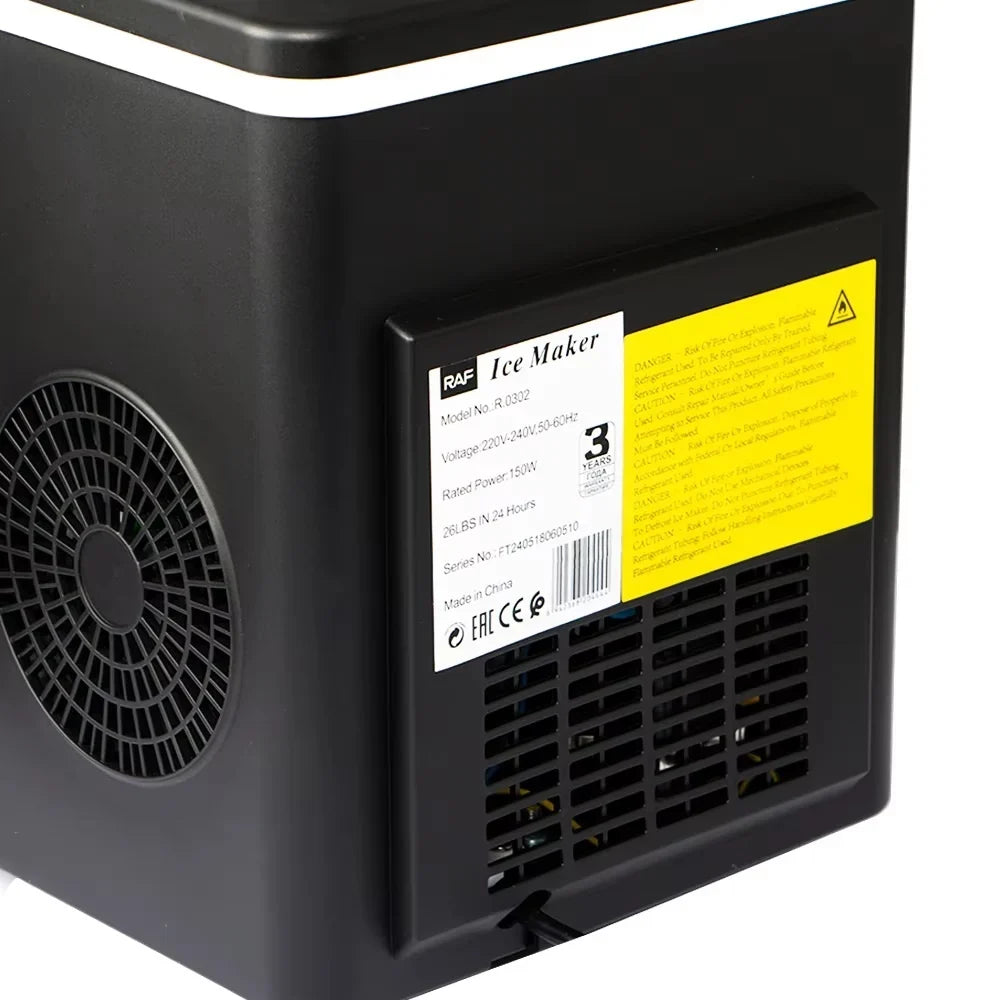 Masina de gheata portabila, RAF R0302, 150W, 12 kg/24 h, volum 1.2 L, cu autocuratare, cos si lingurita, 26x23x29 cm, negru