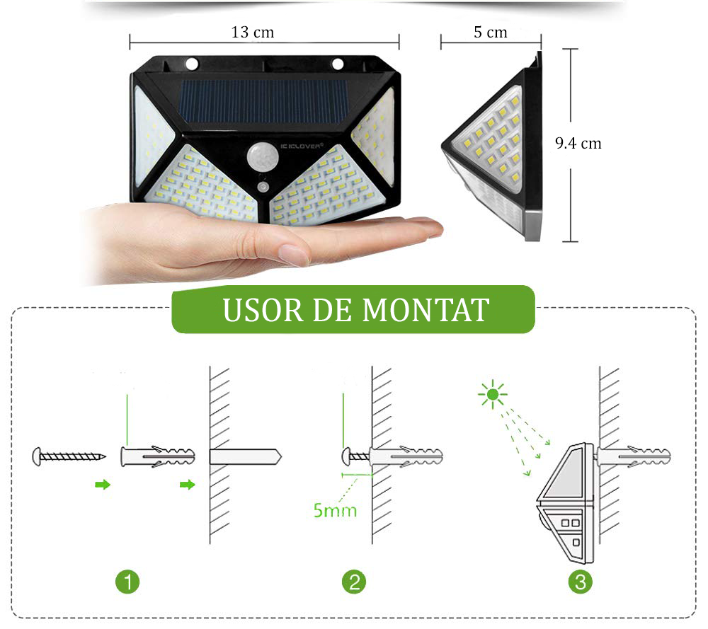 - Unghi de iluminare: 120° | Rezistentă la ploaie, vânt și frig