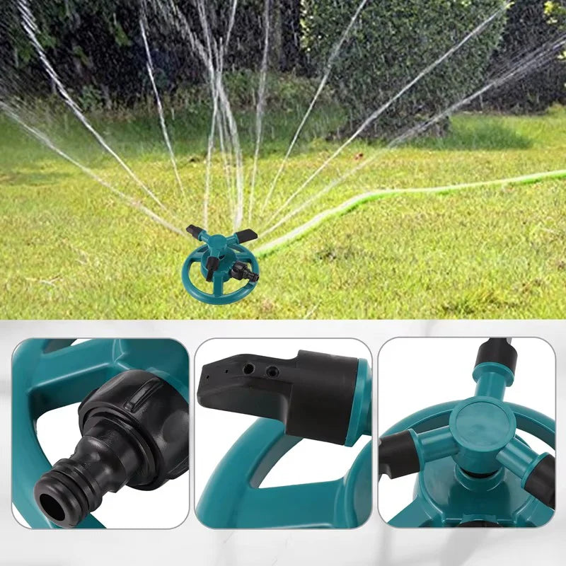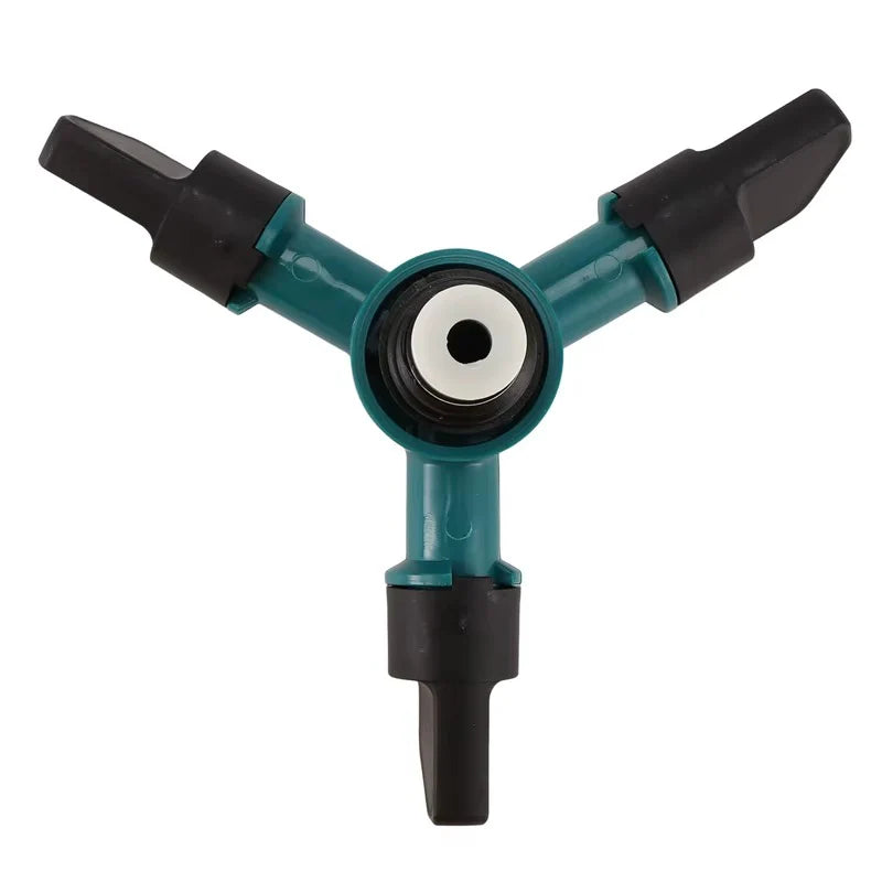 Acest set conține 5 aspersoare rotative, proiectate pentru irigarea eficientă a grădinii, gazonului sau altor spații verzi. Fiecare dispozitiv este echipat cu trei brațe rotative, iar în capătul fiecărui braț se află o duză de stropire ajustabilă. Sub presiunea apei, brațele încep să se rotească automat, generând o pulverizare uniformă într-un cerc cu rază de până la 4 – 4,5 metri.