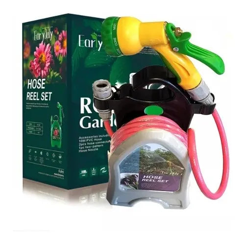 Furtun de grădină 10 metri cu tambur și pistol multifuncțional – putere, ordine și versatilitate într-un singur set!