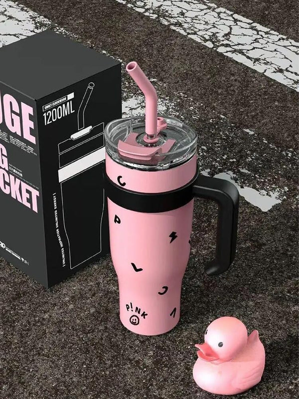 1+1 CADOU – Pahar Termos Izolat din Otel Inoxidabil, 1200 ml, cu Pereti Dubli, Maner si Pai