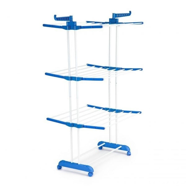 Confectionat din plastic durabil- caneluri pliabile cu doua fete prevazute cu orificii pentru atasarea umeraselor; Pozitia reglabila a rafturilor cu manere permite uscarea hainelor de diferite dimensiuni;