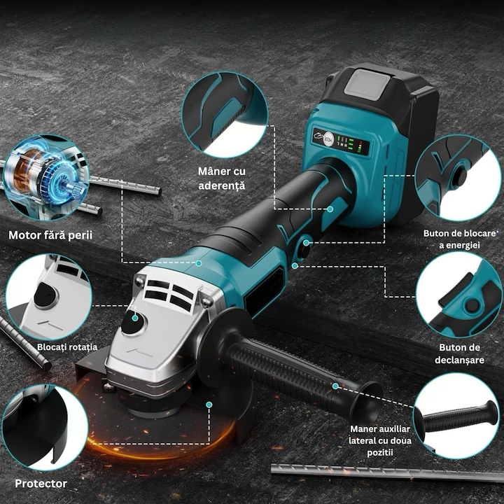 Polizorul unghiular este conceput pentru tăiere, șlefuire și finisare pe diverse materiale, oferind performanță ridicată și control excelent.