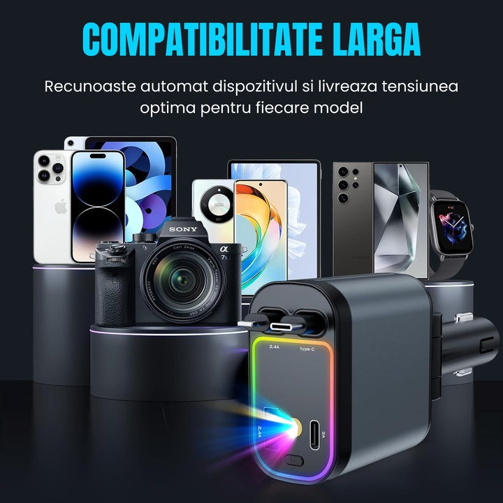 🚗 Incarcator auto multifunctional 66W – Rapid, elegant și inteligent