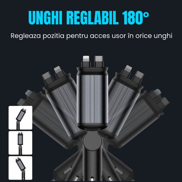 • 2 porturi USB + 2 cabluri retractabile integrate (Type-C și Lightning)