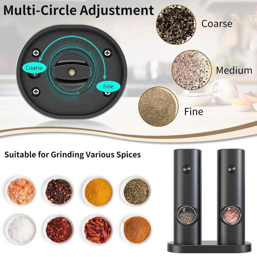 Set de rasnita de piper din 2 piese: Setul nostru de sare si piper vine cu o baza de depozitare. Lumina LED ramane aprinsa pe masura ce macinati pentru a controla condimentele si pentru a evita condimentele excesive.